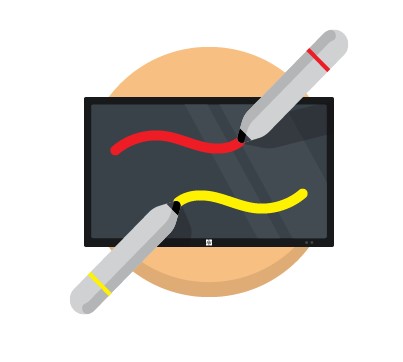 Für eine einfache Zusammenarbeit auf einem einzigen Monitor ermöglichen die TouchScreen 6 Connect Series zwei Personen, mit zwei Farben gleichzeitig im Whiteboard-Modus zu schreiben.