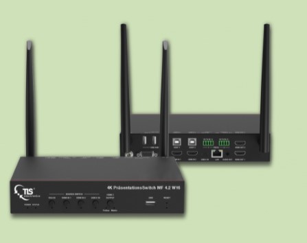 Der Präsentationsswitch ist ein Umschalter für 2 HDMI-,1 USB-C, 1VGA/A und bis zu 16 Wireless Geräte auf einen oder zwei schaltbare 4K @60 HDMI Ausgängen. Alle Geräte mit Airplay und Miracast werden kabellos über den MF 4.2 W16 mit Bild und Tonsignal zu einem geeigneten Wiedergabegerät gestreamt. Über einen USB Host können 2 USB Signale auf bis zu 3 USB Ausgänge (Hub) geschaltet oder verteilt werden und geeignete Wiedergabegeräte z.B. Touchboard, Drucker usw. steuern.